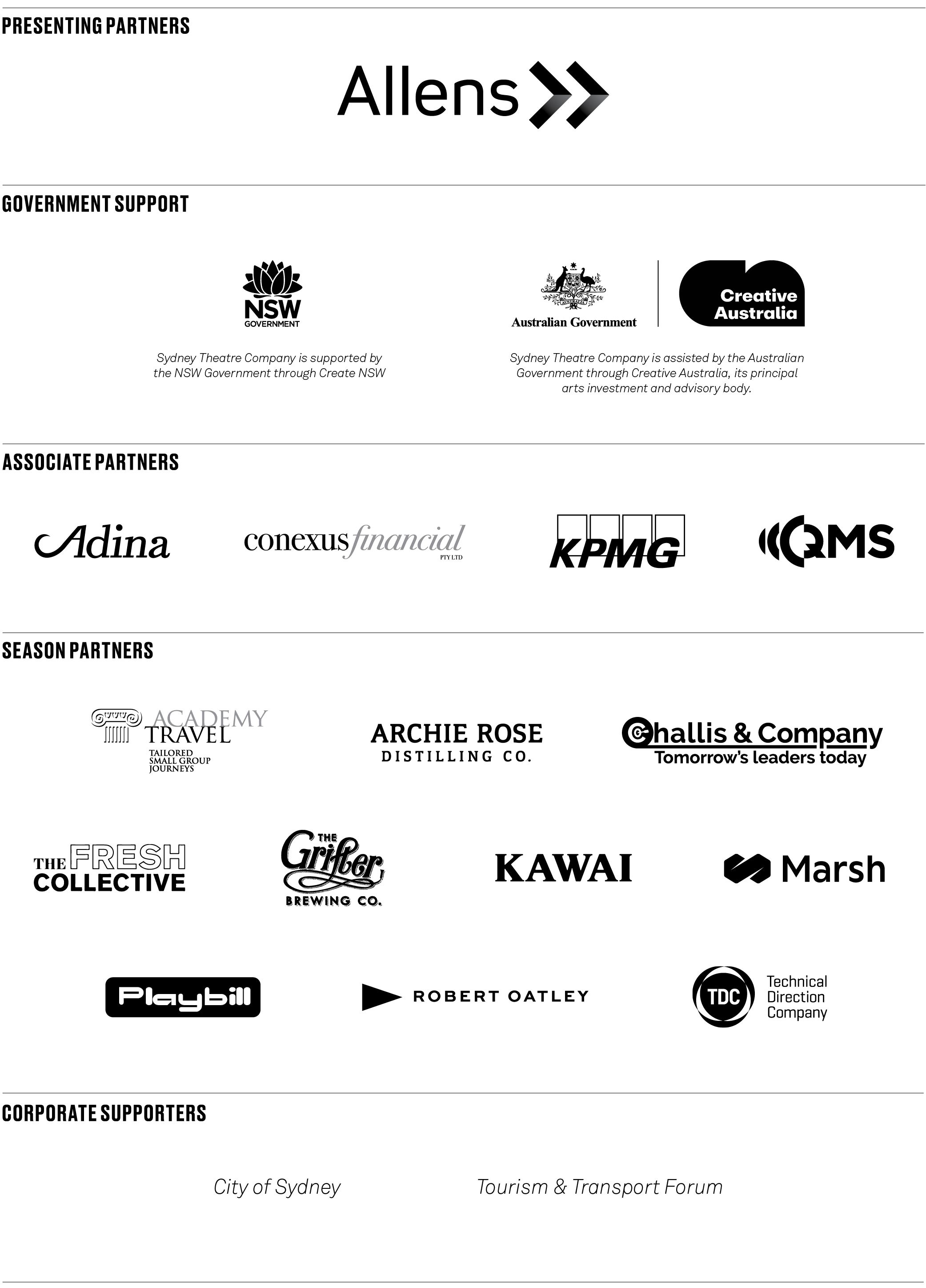Sydney Theatre Company is grateful to our corporate partners for their generous support of theatre and the arts. We applaud their commitment and vision.